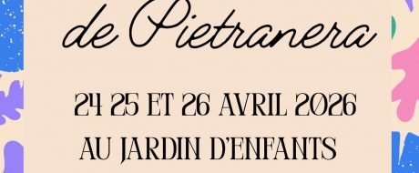 Marché aux Fleurs de Pietranera 2024 Nous vous accueillons du 3 au 5 Mai au Jardin d’Enfants pour le traditionnel Marché aux Fleurs de Pietranera. A cette occasion, nos associations exposeront leurs réalisations. Une petite restauration vous sera proposée sur place.