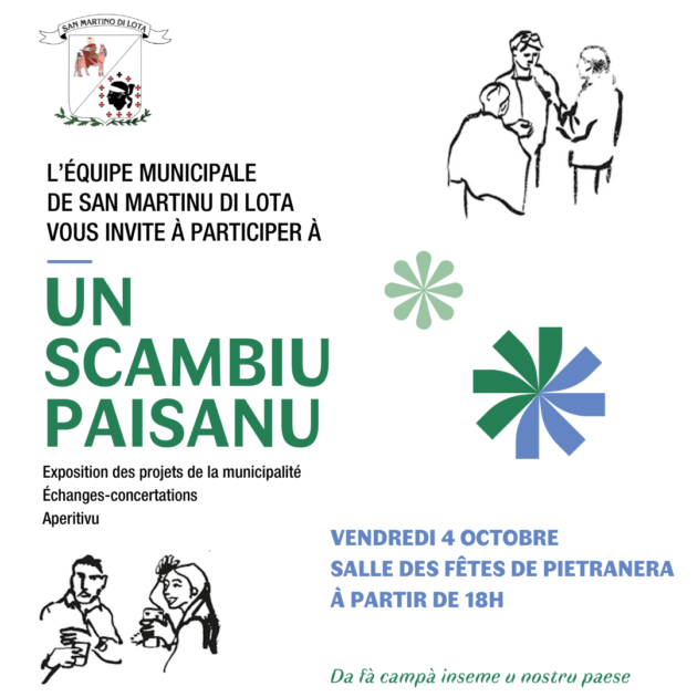 Un Scambiu Paisanu Rendez-vous le 4 octobre ! Projets communaux, enjeux, attentes, propositions… Venez échanger avec nous V’aspettemu numerosi !